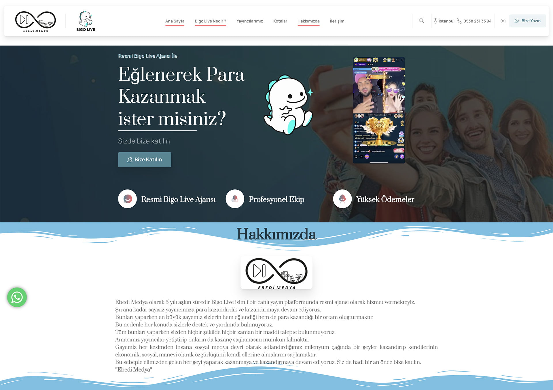 Resmi Bigo Live ajansı Ebedi Medya web sitesi